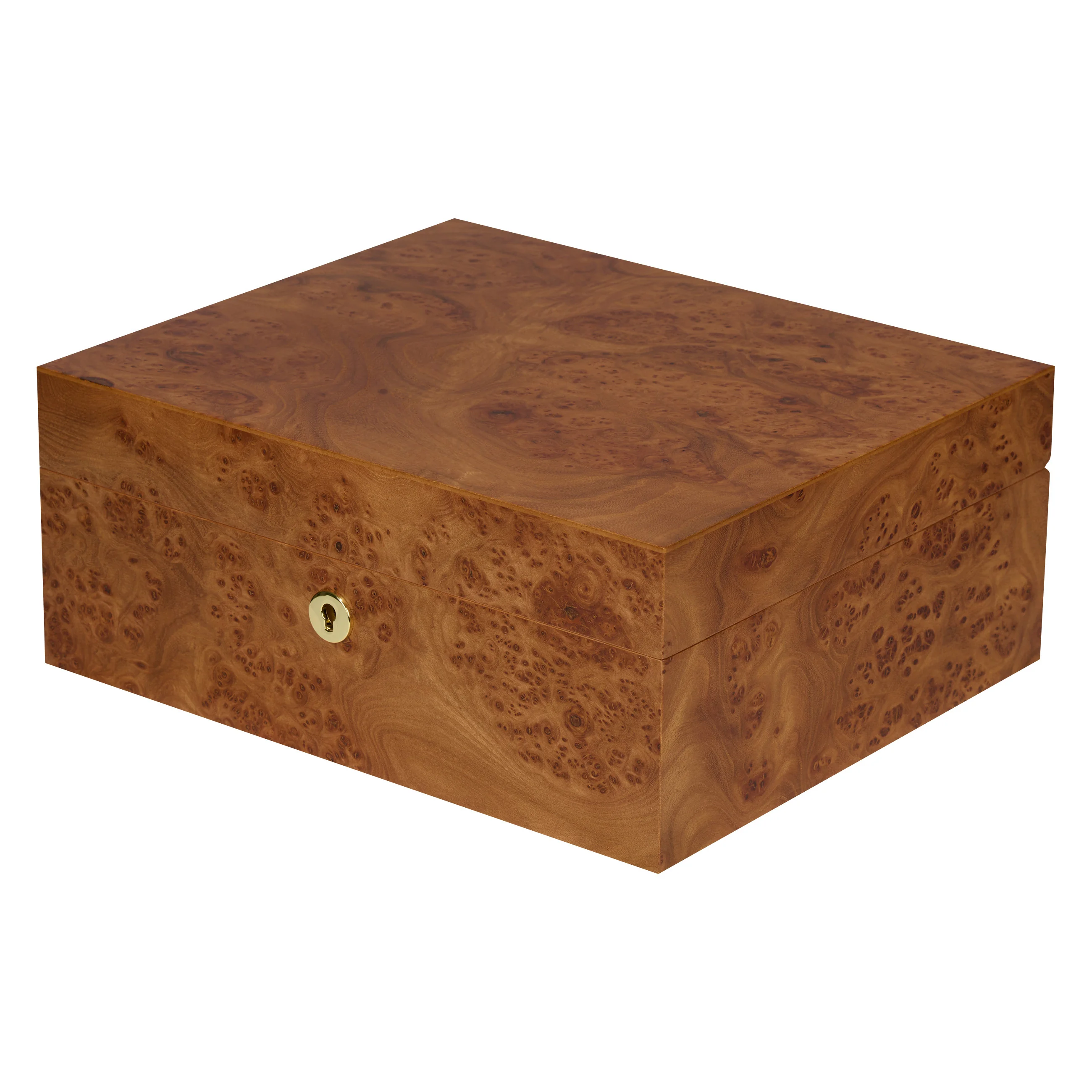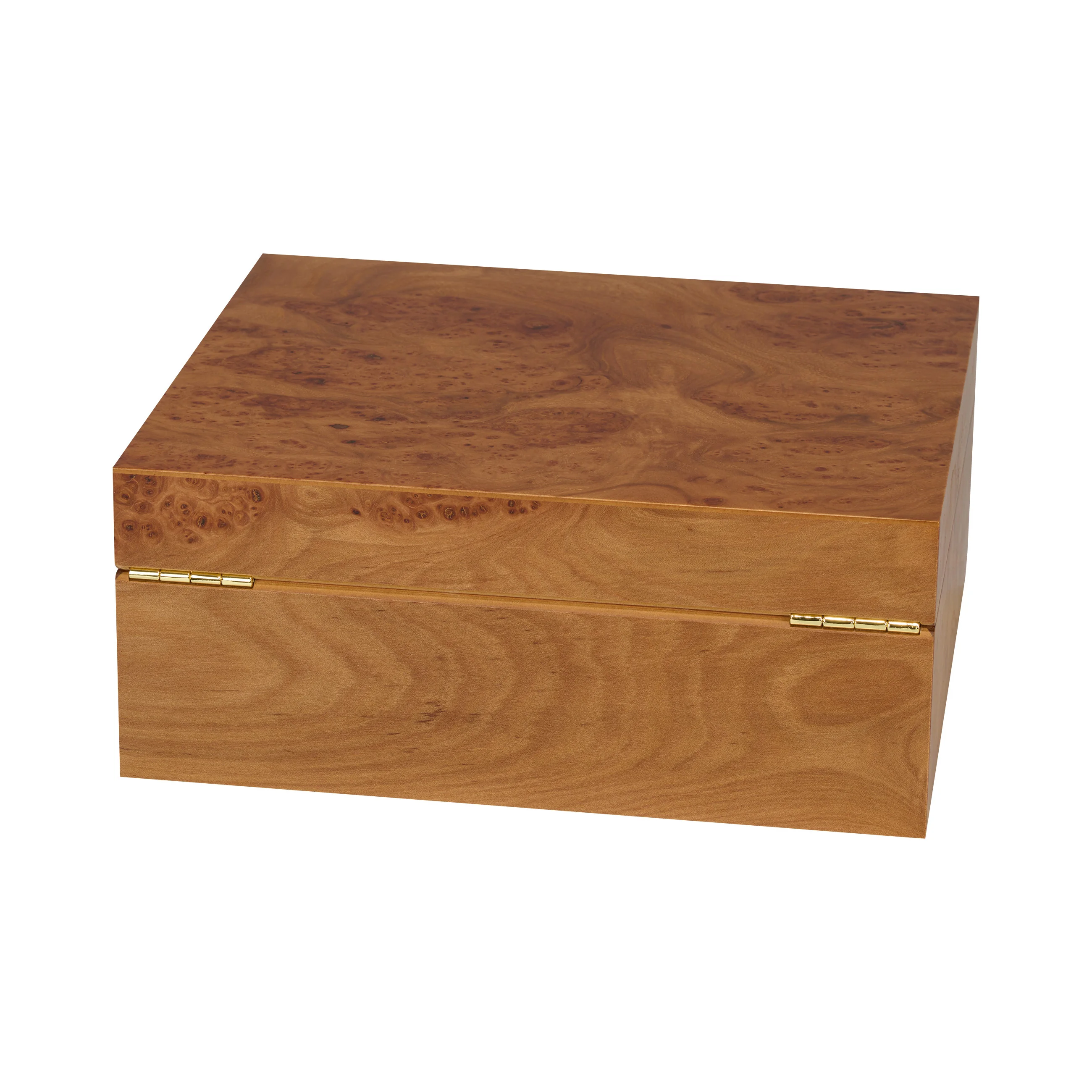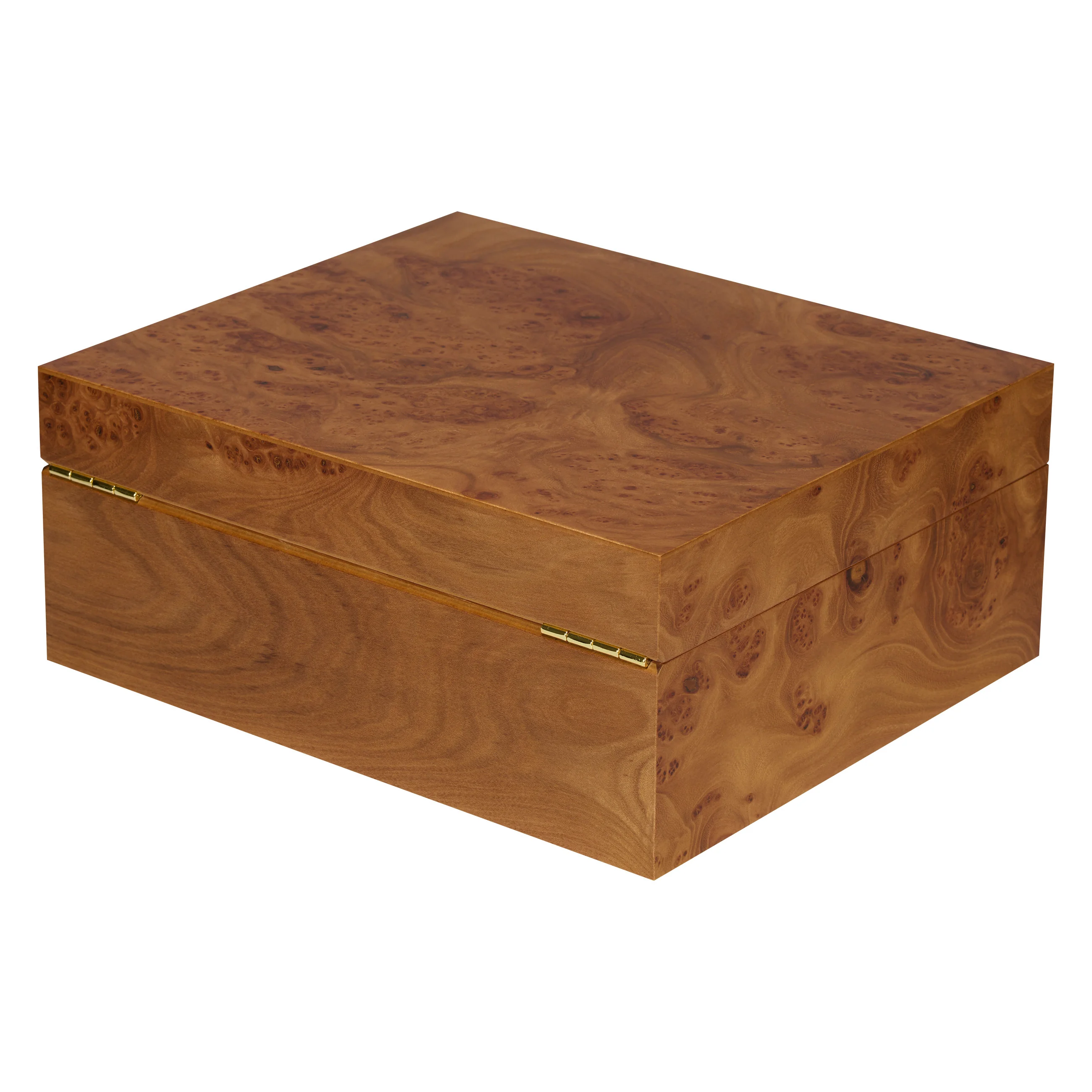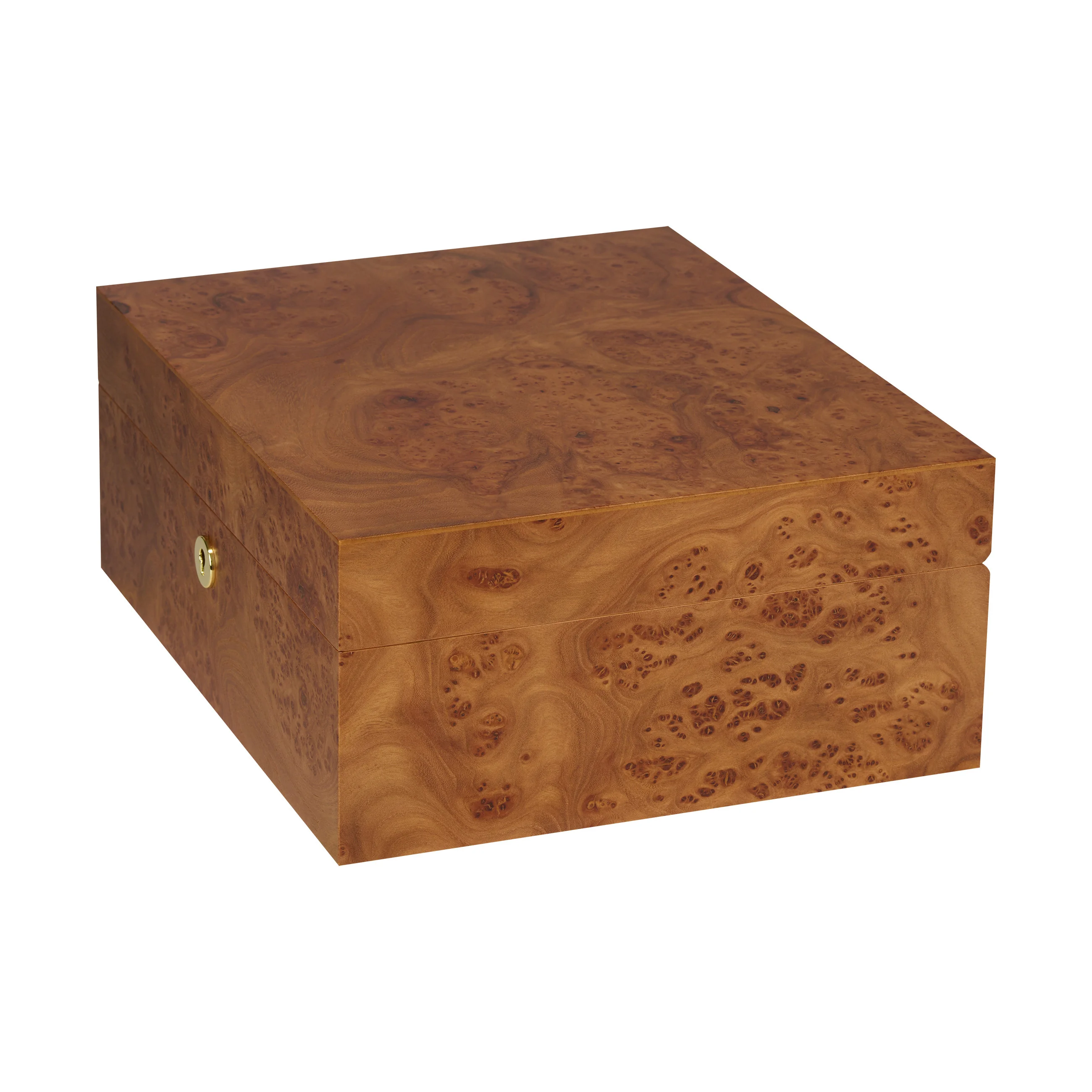 Jalavapuu tekee vaikutuksen tyypillisillä syykuvioillaan, joissa on lämpimiä ja tummanruskeita sävyjä ja silmiinpistäviä oksankohoumia, joita kutsutaan myös "silmiksi". Lämpimän ja luonnollisen ulkonäön ansiosta humidori sopii harmonisesti lähes mihin tahansa ympäristöön. Keskikokoisiin humidoreihin mahtuu jopa 75 sikaria, joten niissä on runsaasti tilaa sikarikokoelmallesi.