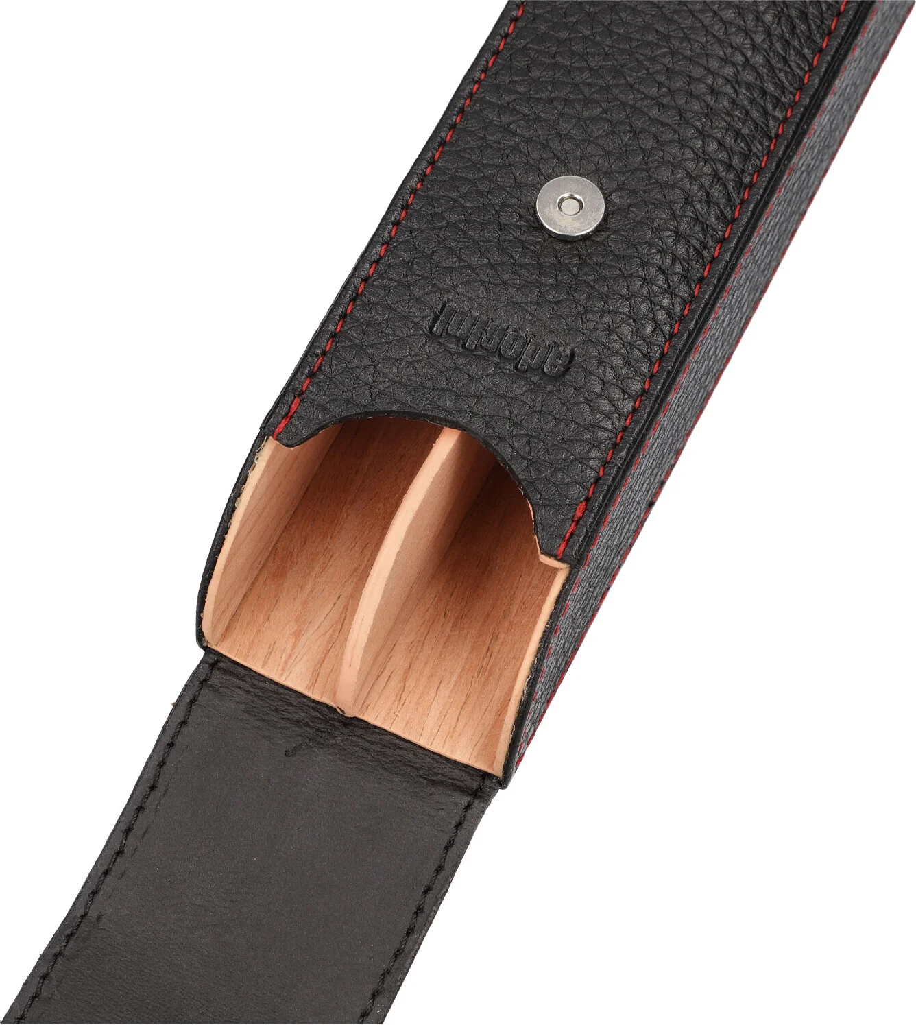 adorini Pocket Sikarikotelo Musta punaisella koristeellisella ompeleella, tarviketaskulla