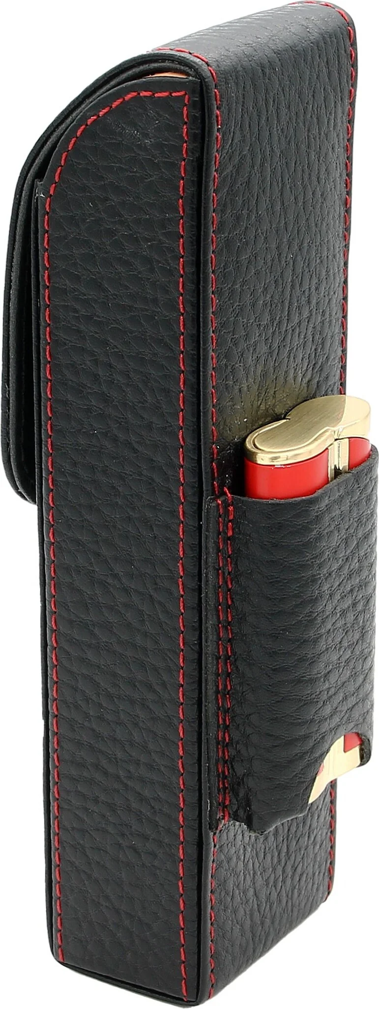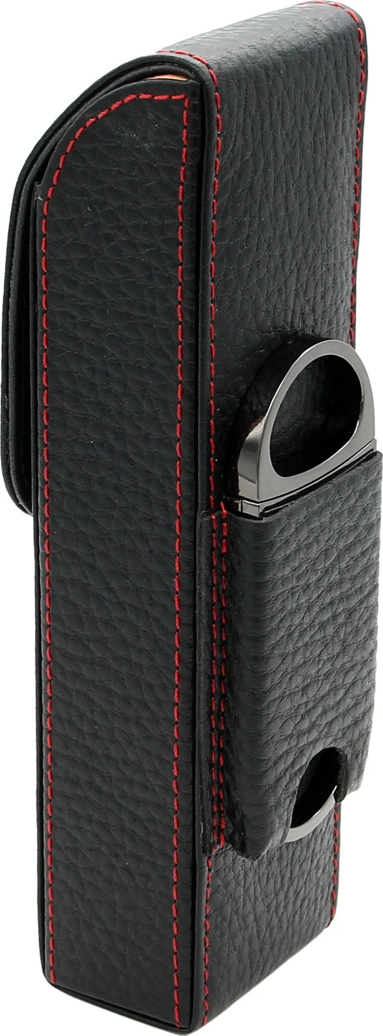 adorini tasku nahkainen sikarikotelo 2 sikaria musta ja punainen lanka pussila leikkurille tai sytyttimelle