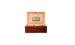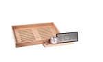Tämä moderni ja toiminnallinen adorini Basic -sarjan humidori koossa L tekee vaikutuksen mattapintaisella viimeistelyllään ja kauniilla syyllään. Siinä on tilaa noin 150 sikarille tai jopa pienemmille sikarilaatikoille, joten se tarjoaa ihanteellisen ratkaisun sikareiden turvalliseen säilytykseen. Pakkaus sisältää analogisen kosteusmittarin ja passiivisen sienikostuttimen. Kosteusmittari mittaa kosteutta metallikierteen avulla, ja se kiinnitetään yhdessä ilmankostuttimen kanssa magneettisesti ja joustavasti humidorin kanteen. Humidori on myös varustettu lukolla, joka suojaa luvattomalta käytöltä. Mukana tulee kaksinkertainen avainsarja, joten sinulla on vara-avain. Humidorissa on mattahopeiset saranat sisällä ja erityisen vahva tiivistehuuli, joka varmistaa optimaalisen kosteuden säilymisen. Pystysuora tilanjakaja mahdollistaa sisätilojen lisälokeroinnin. Ylimääräinen, irrotettava porrastettu jalusta järjestää humidorin esteettisesti ja toiminnallisesti. Se on irrotettava ja varustettu tuuletusurilla optimaalisen kosteudenkierron takaamiseksi.