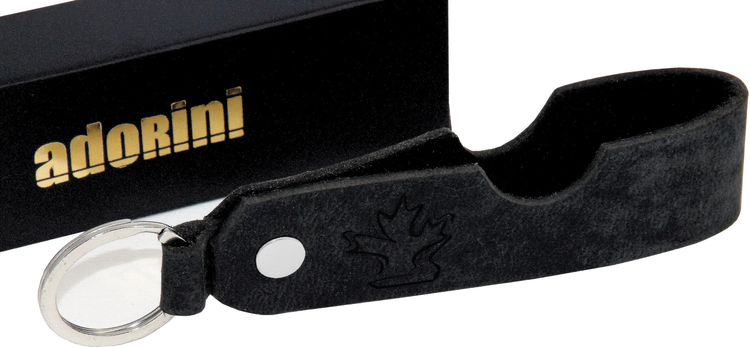 adorinin sikari- ja piipputuki aidosta nahasta tehtynä avaimenperänä, musta – rajoitettu erä Tyylikäs ja käytännöllinen lisävaruste sikarin ja piipun ystäville: Aidosta nahasta valmistettu adorini-avaimenperä elegantin mustana ei toimi vain avaimenperänä vaan myös liikkuvana sikari- ja piipputukena. Varsinkin liikkeellä ollessa ei useinkaan ole sopivaa tapaa laskea sikaria vapaasti alas – tämän näppärän kumppanin kanssa sinulla on aina oma lepotuki käden ulottuvilla. Yhdellä puolella on adorini-tuotemerkin logo tyylikkäästi kohokuvioituna, kun taas vastakkaisella puolella vaahteranlehti antaa erityisen korostuksen. Avaimenperä toimitetaan houkuttelevassa lahjapakkauksessa – ihanteellisena myös tyylikkääksi lahjaksi sikarin ystäville. Tekniset tiedot: