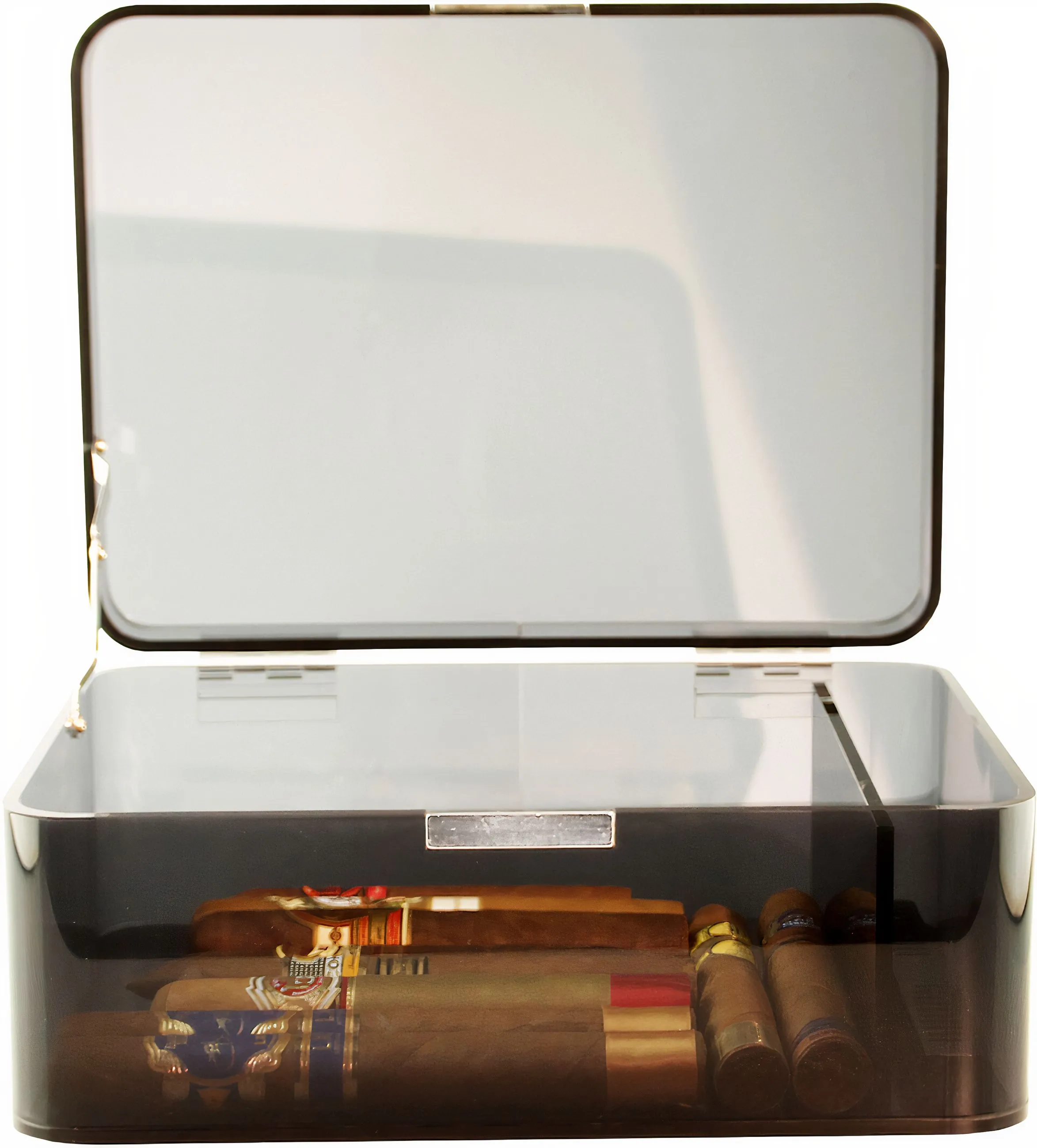 Akryylihumidoreista on tulossa kasvavasti suosittuja, ja ne edustavat modernia säilytysvaihtoehtoa sikarin ystäville. Olivat ne sitten kirkkaita tai sävytettyjä – ne eivät tarjoa ainoastaan turvallista suojaa, vaan ne myös esittelevät kokoelmaasi tyylillä. Tämä sävytetty akryylihumidori yhdistää toiminnallisuutta houkuttelevaan muotoiluun ja tarjoaa tilaa noin 50 sikarille.