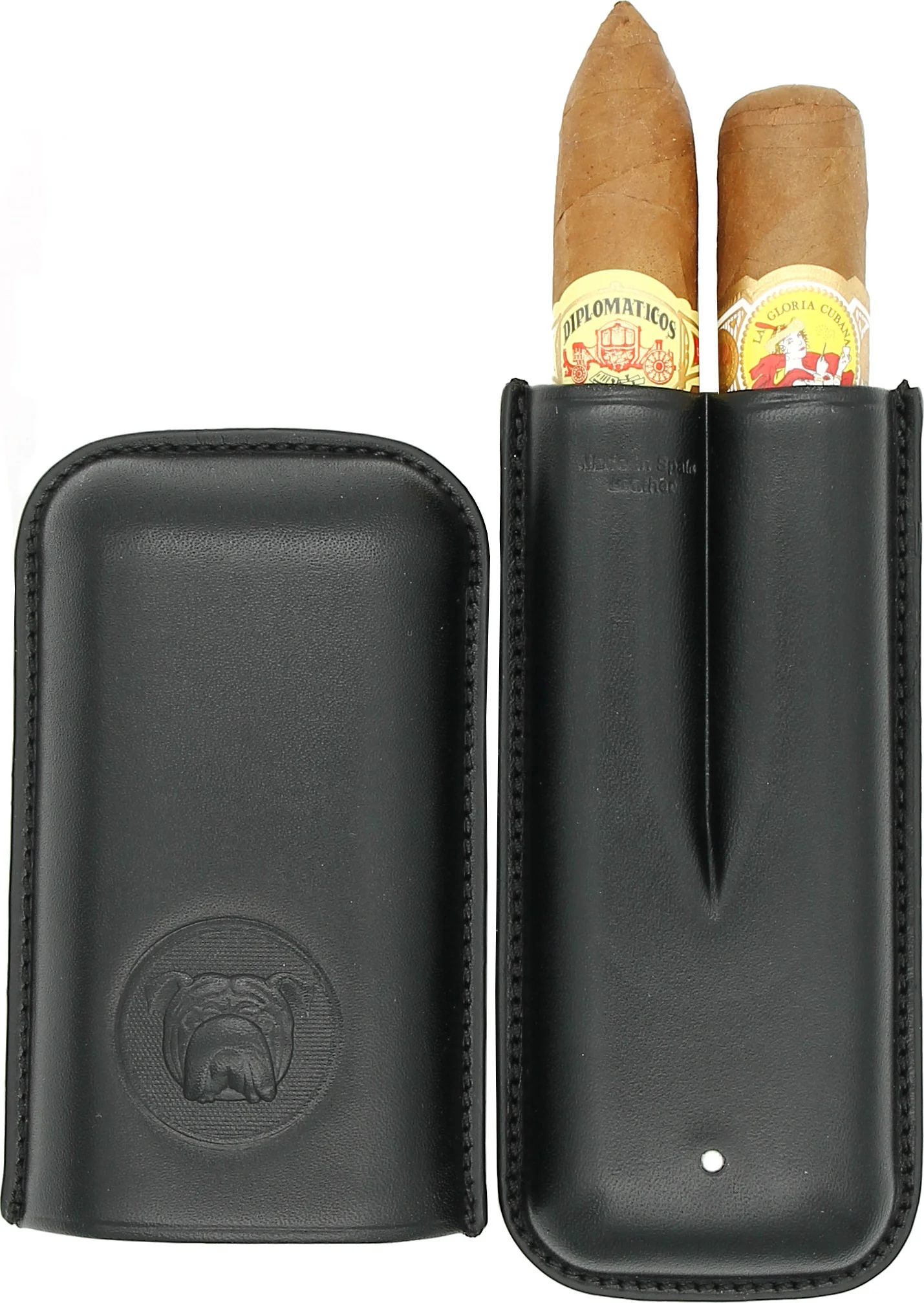 Mustassa Bulldog by Dunhill Robusto -sikarikotelossa yhdistyvät tyylikkyys ja kestävyys laadukkaassa lisävarusteessa. Aidosta nahasta ja Espanjassa valmistettu tekee vaikutuksen klassisella käsityötaidolla ja näyttävällä muotoilulla.