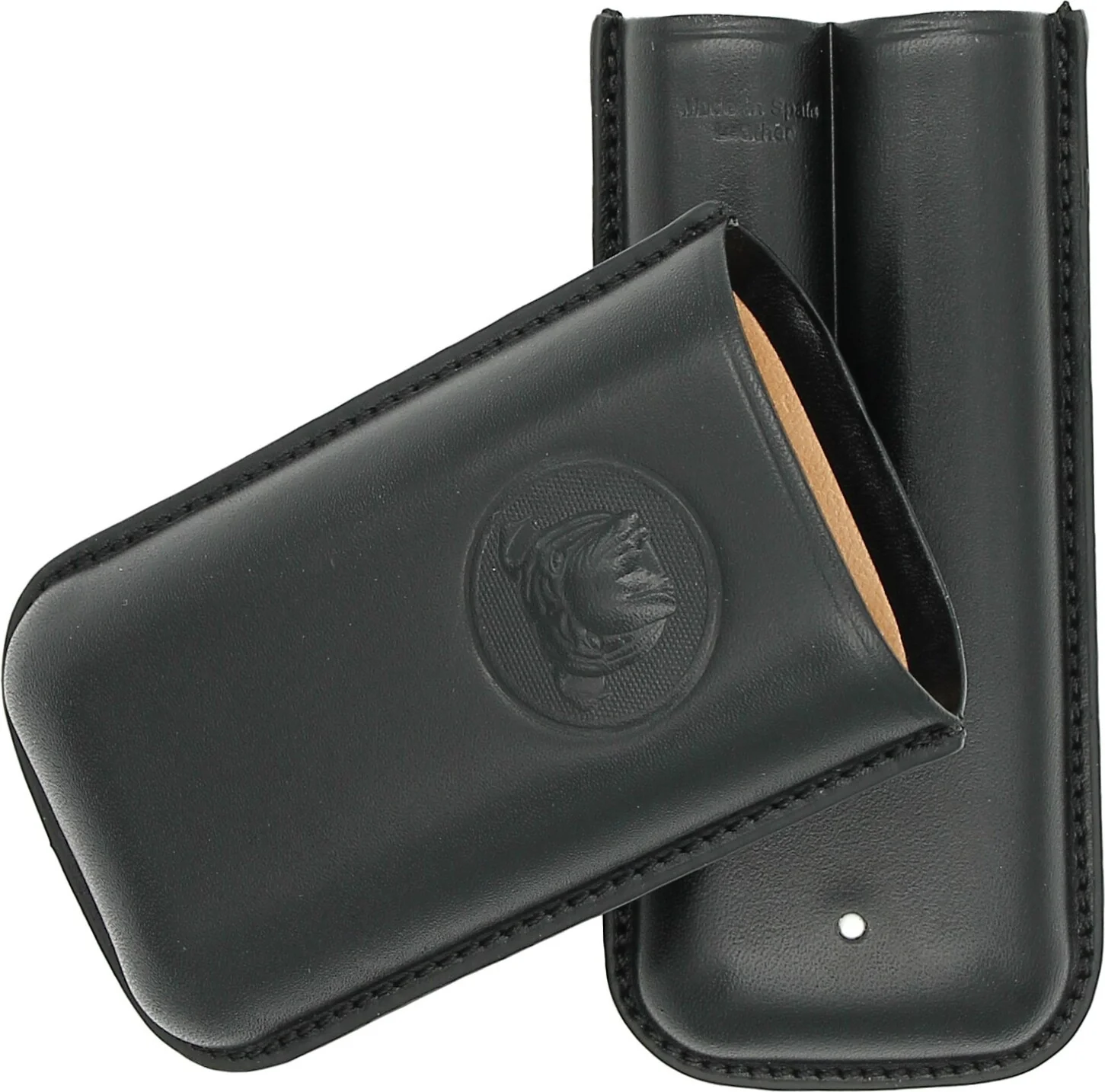 Sisällä kotelossa on tilaa kahdelle erikokoiselle sikarille. Käytännölliset lovet takaavat turvallisen pidon kuljetuksen aikana. Sisäpuoli on vuorattu pehmeällä, vaalealla nahalla ja suojaa sikarit luotettavasti.