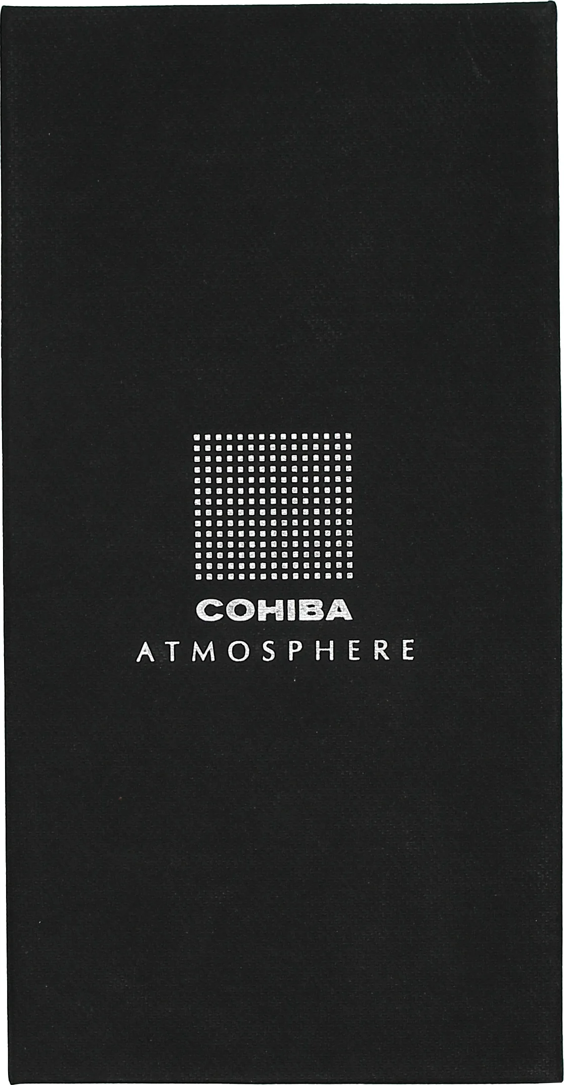 Etupuolella oleva tyylikäs hopeinen Cohiba Atmosphere -logopainatus takaa välittömän tunnistettavuuden ja antaa kotelolle ylellisyyden ja aitouden auran.