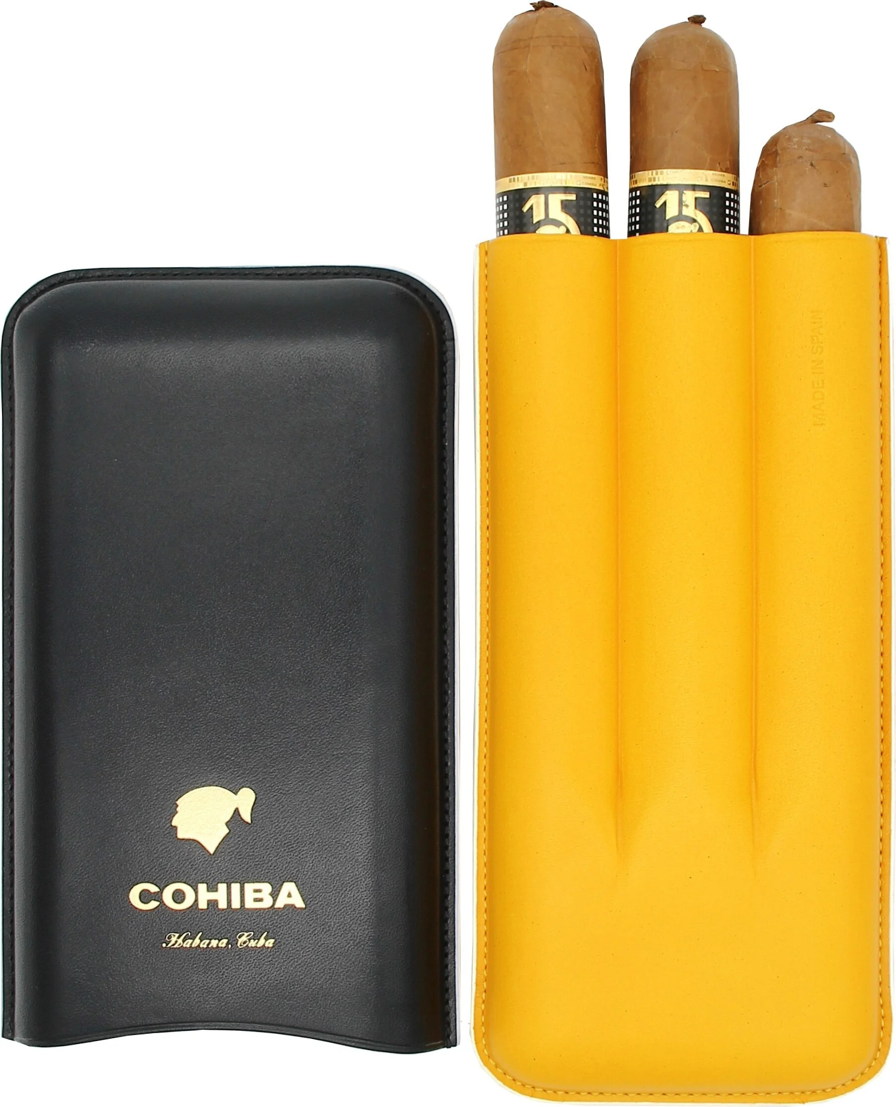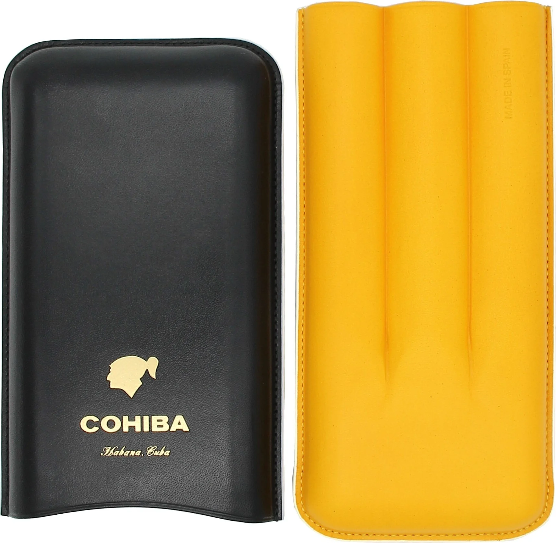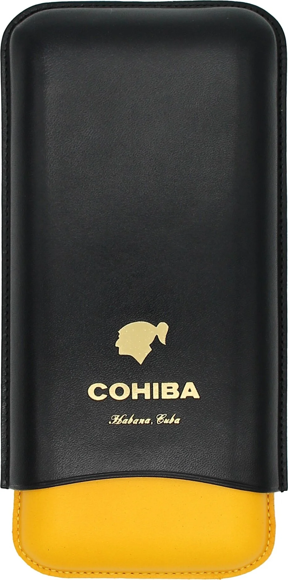 Cohiba-sikarikotelo mustassa, keltaisessa ja valkoisessa värissä on Kuuban kuuluisimman sikarimerkin hienostunut lisävaruste. Mustan ja keltaisen nahan ikoninen yhdistelmä valkoisella reunuksella tuo mieleen Cohiballe tyypillisen ilmeen ja luo harmonisen kontrastin. Etupuolelle painettu kultainen Cohiba-logo antaa kotelolle laadukkaan ulkonäön ja tunnistaa sen selvästi eksklusiiviseksi merkkituotteeksi.