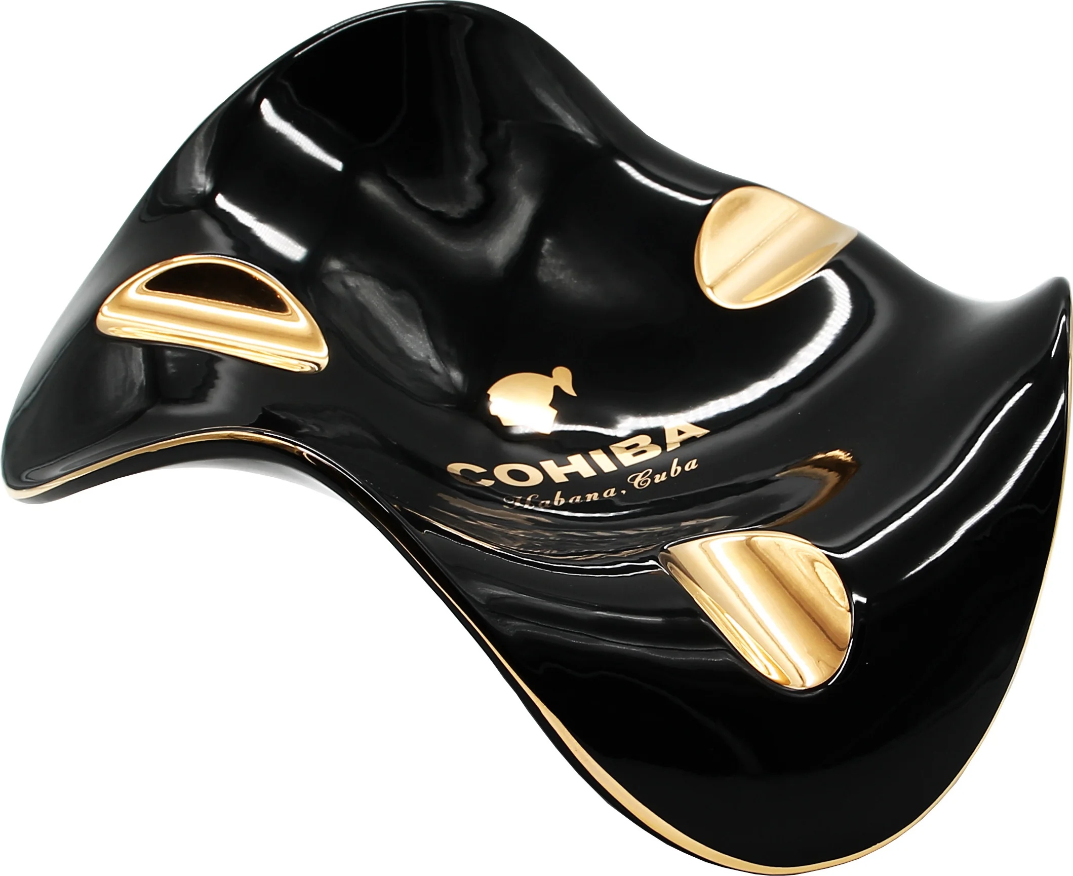 Cohiba-tuhkakuppi mustana ja kultaisilla korostuksilla on poikkeuksellinen lisävaruste tunnetuimmalta kuubalaiselta sikarimerkiltä, Cohibalta. Sen kaareva muotoilu antaa sille erityistä eleganssia, mikä tekee siitä todellisen katseenvangitsijan missä tahansa ympäristössä. Kolme reilun kokoista sikaritukea tarjoavat runsaasti tilaa sikareiden nauttimiseen seurassa ja yhdistävät toiminnallisuuden ja esteettisyyden.