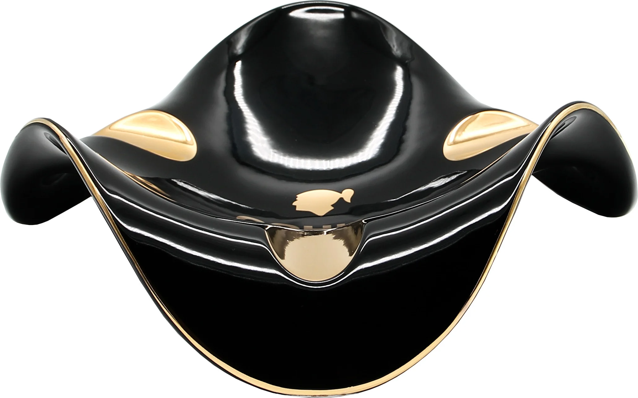 - Tyylikäs musta sikarituhkakuppi, jossa on kultaiset korostukset