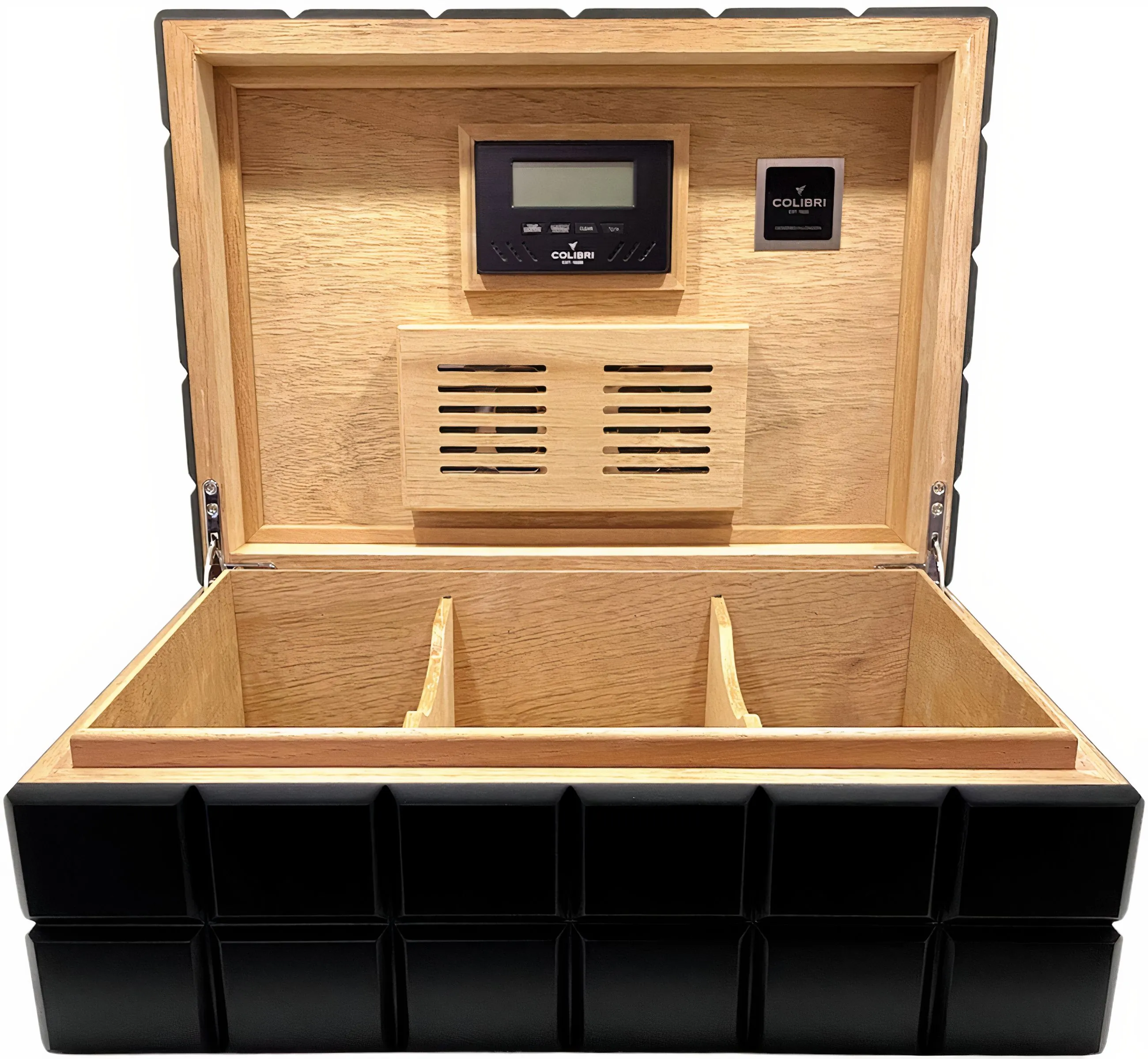 Colibri-tuotemerkin moderni humidori geometrisella laattakuvioinnilla