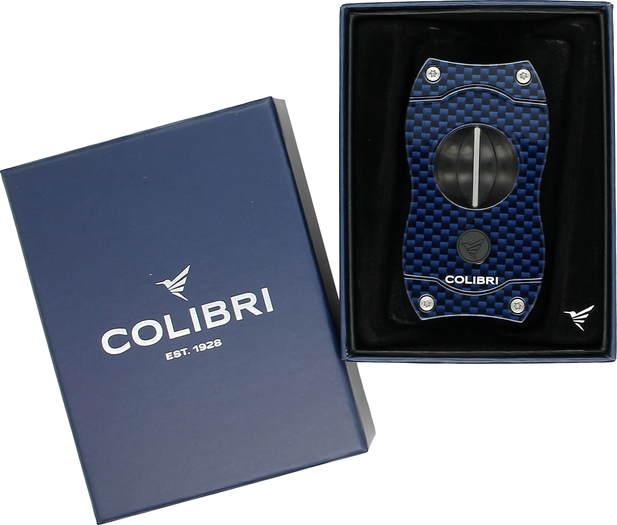 Kansainvälisesti tunnetun Colibri-tuotemerkin patentoitu ja kestävä tuote. Tässä perinteisellä lovileikkauksella varustetussa sikarileikkurissa yhdistyvät harmonisesti muotoilu ja toiminnallisuus. Nykyaikainen hiilimäinen ulkoasu ja tyylikäs sininen tekevät siitä monien sikarin ystävien suosikkituotteen. Ruostumattomasta teräksestä valmistettu terä uppoaa vaivattomasti sikarinpään läpi ja paljastaa V-muotoisen aukon. Tämä tuote sopii myös ihanaksi lahjaksi, sillä se toimitetaan houkuttelevassa lahjapakkauksessa. Valmistaja takaa toimivuuden kahdeksi vuodeksi.