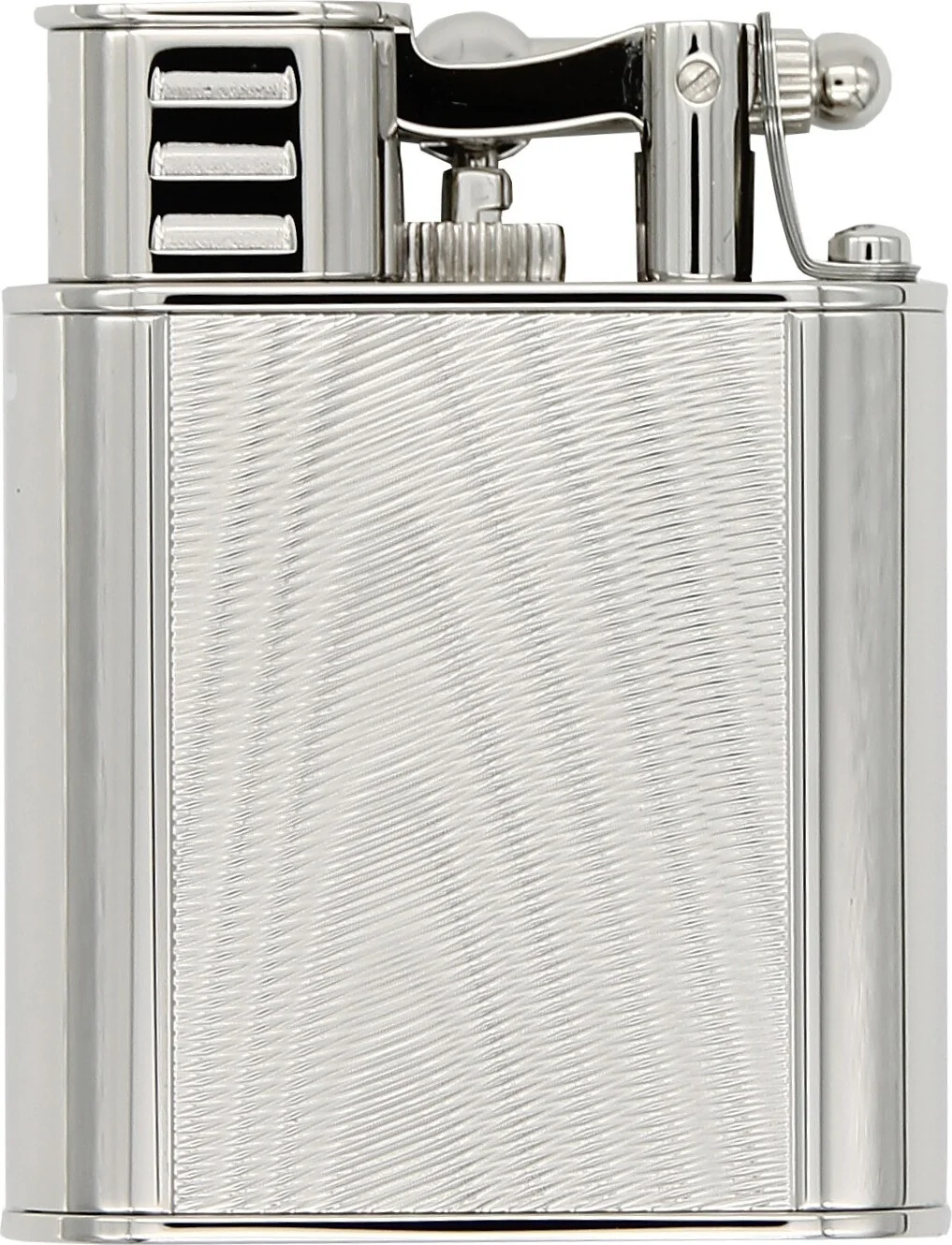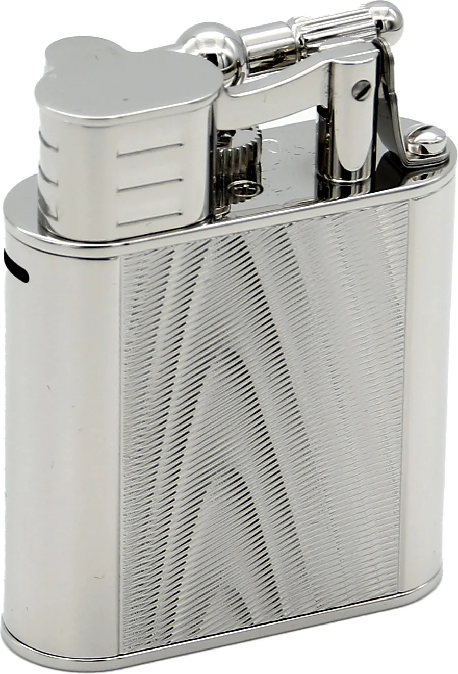 Moiré-kuvion ja kiiltävien pintojen tyylikäs yhdistelmä luo esteettisen yleisilmeen ja tekee sytyttimestä tyylikkään asusteen. Suojaläppä suojaa sytytysmekanismia pölyltä ja lialta. Heti kun läppä avataan ja sen takana olevaa vipua painetaan alas, avautuu voimakas sininen suihkuliekki.