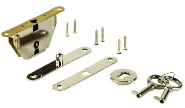 Humidor Built-in Lock Set hopeanvärisenä on kattava sarja, joka on suunniteltu humidoriharrastajille. Se sisältää kaikki tarvittavat osat, kuten lukkorungon, avaimenreiän kannen, peitelevyt, ruuvit ja avaimet, ja tarjoaa kaiken tarvittavan humidorisi turvaamiseen.