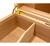 Humidorin luotettavuutta ja tyyliä lisäävät myös muut sisustukseen liittyvät seikat, kuten raskaat saranat, jotka ovat yleensä kultaista tai hopeista levyä. Nämä saranat tarjoavat kestävyyttä ja kannen sulavaa toimintaa auttaen varmistamaan täydellisen sinetöinnin. Monissa Elie Bleu -humidoreissa on houkuttelevat lukko- ja avainsarjat, jotka lisäävät turvallisuutta, sekä setripuiset tilanjakajat sikareiden parempaan organisointiin.