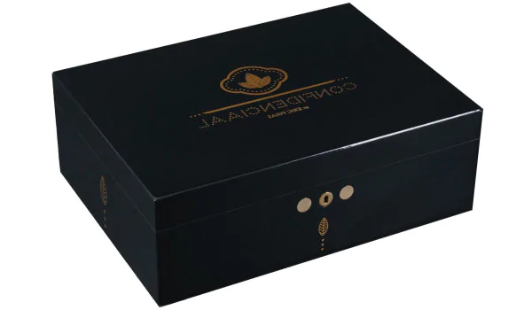 Totem Humidor Confidenciaal tekee vaikutuksen elegantilla, kiiltävän mustalla viimeistelyllä, ja siinä on jopa 125 sikarin kapasiteetti. Mitoillaan, jotka ovat 41 x 30 x 14 cm, se yhdistää toiminnallisuuden ja houkuttelevan muotoilun.