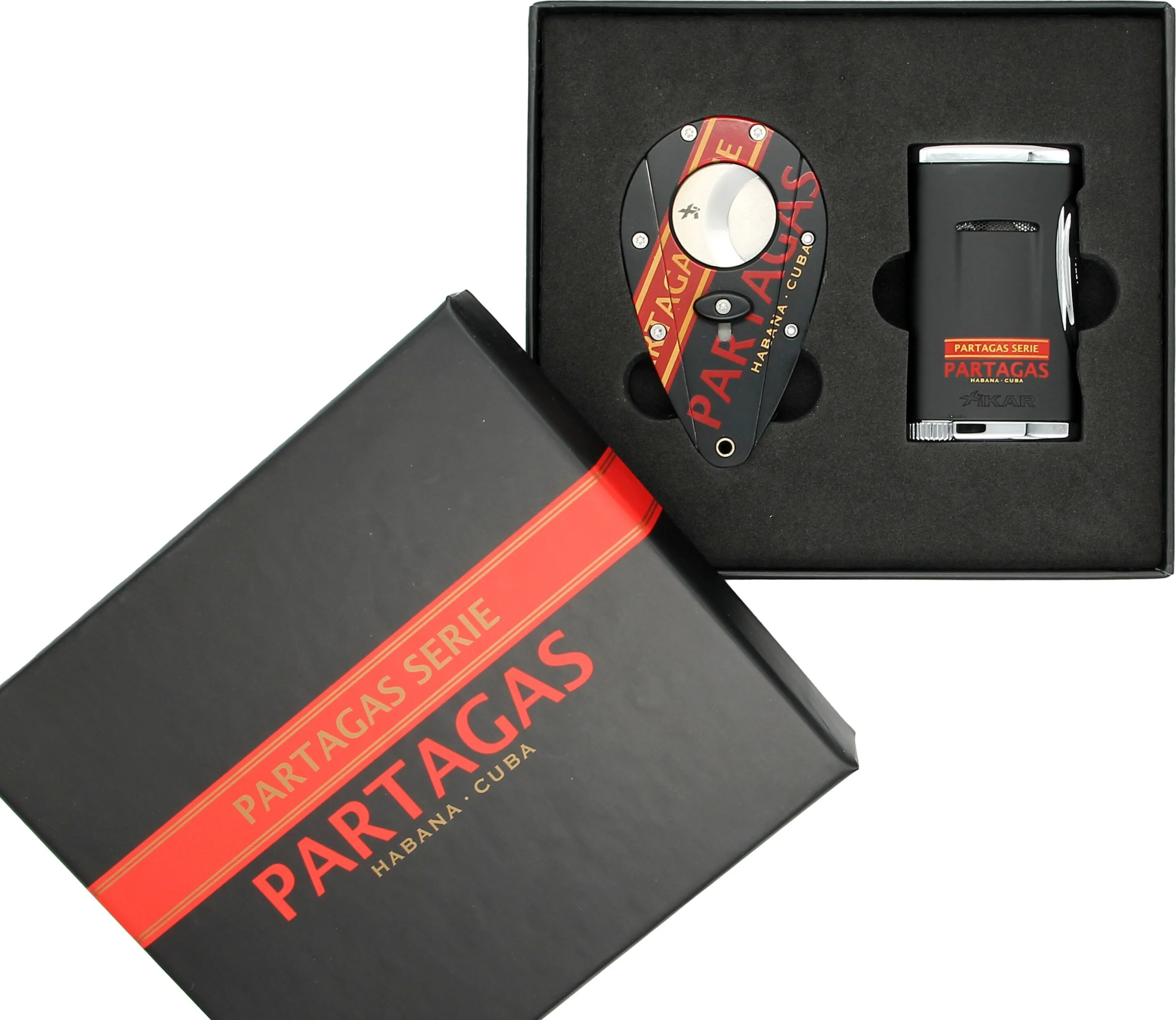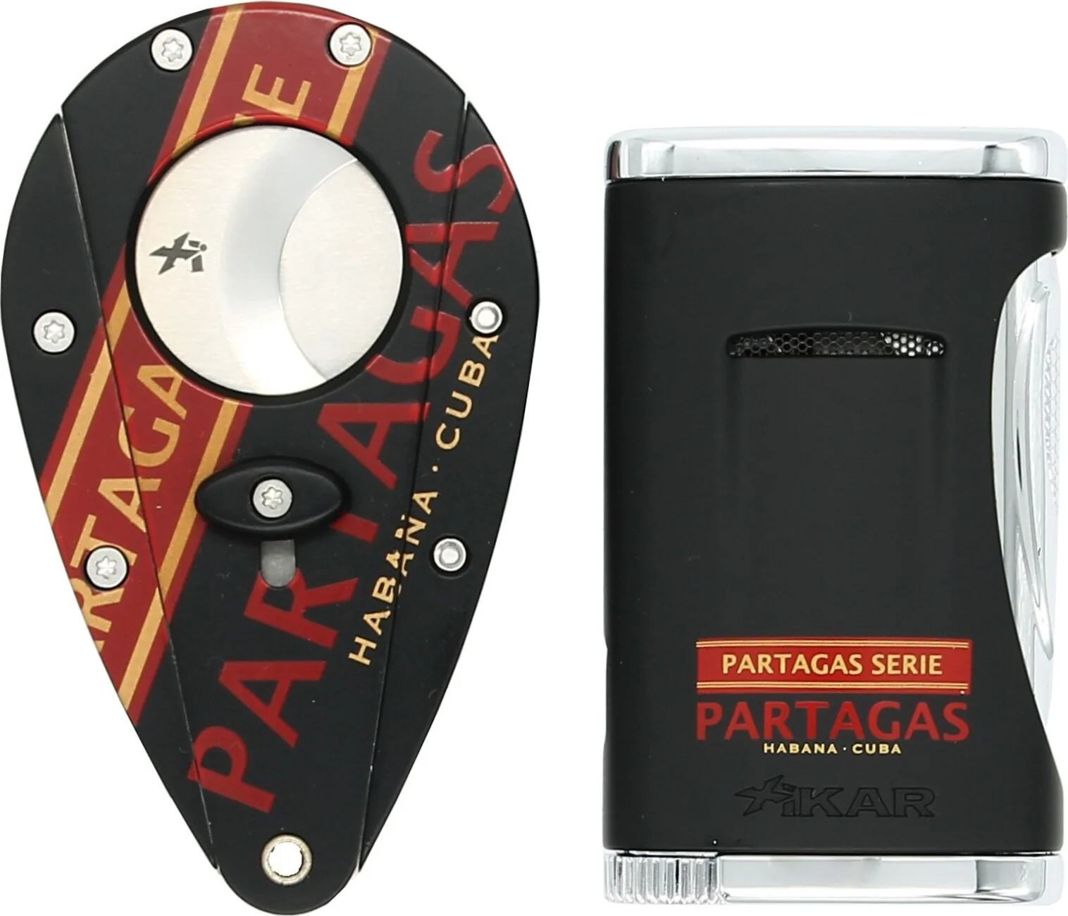 Cutter & Lighter Set Partagas Serie Xikar 2017 on kuubalaisen sikarimerkin Partagasin ja tunnetun sikaritarvikemerkin Xikarin yhteistyö. Tämä setti koostuu sikarileikkurista ja suihkusytyttimestä yhdistäen molempien tuotemerkkien asiantuntemusta poikkeuksellisen sikarikokemuksen tarjoamiseksi.
