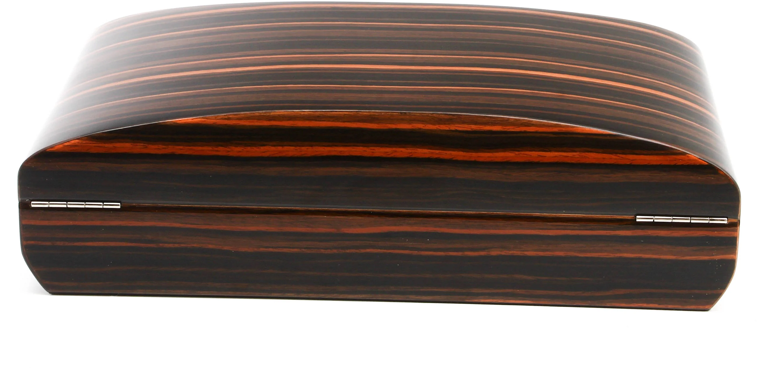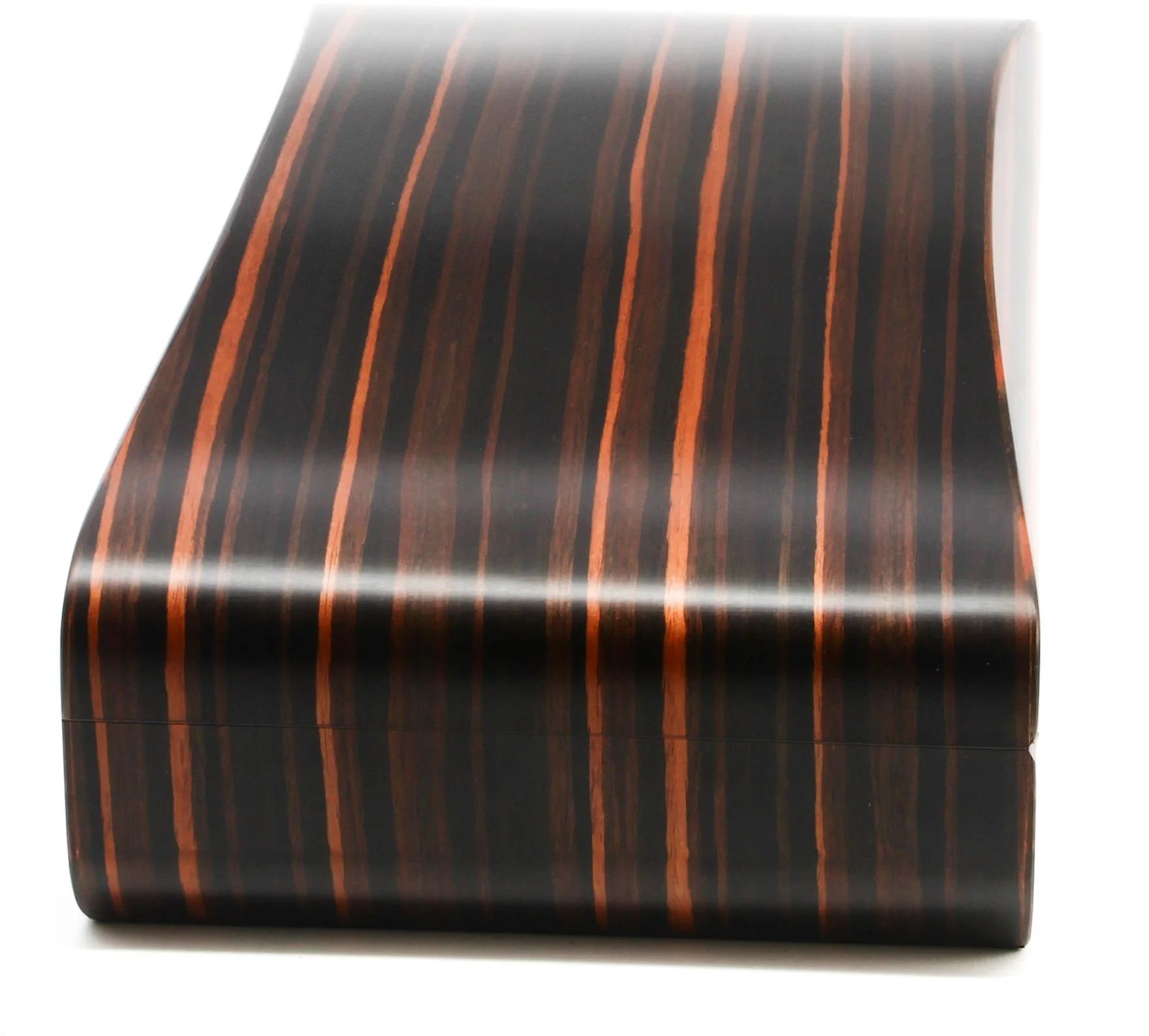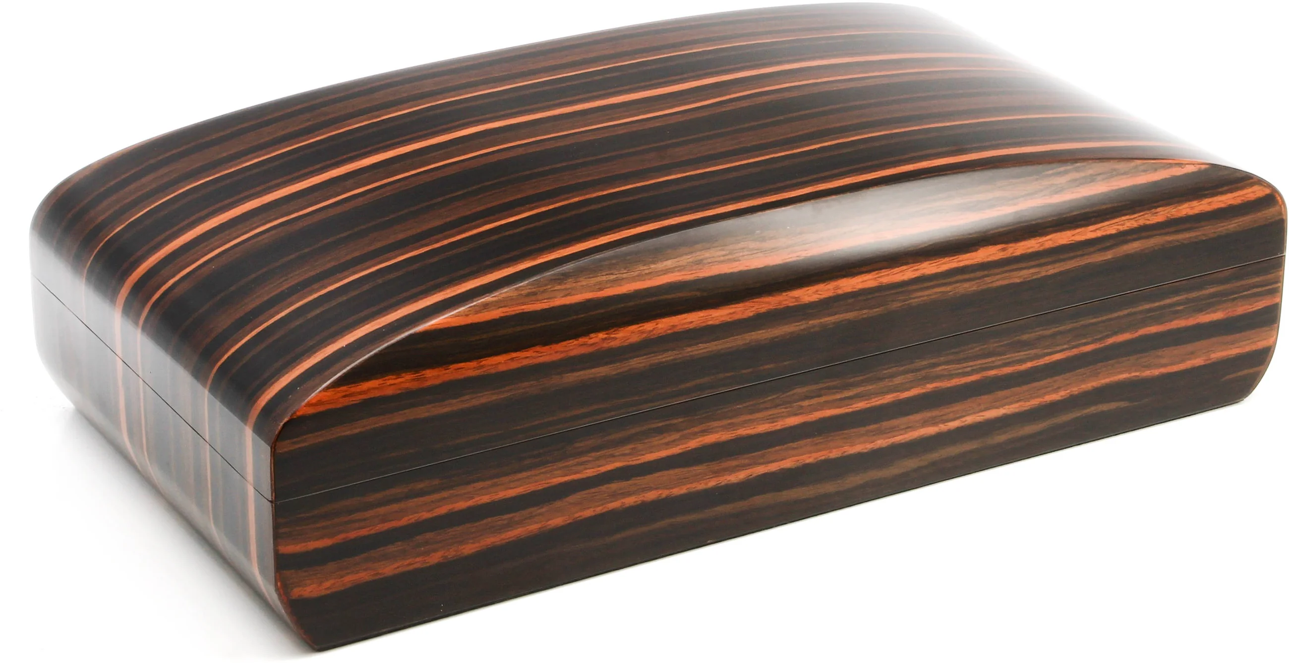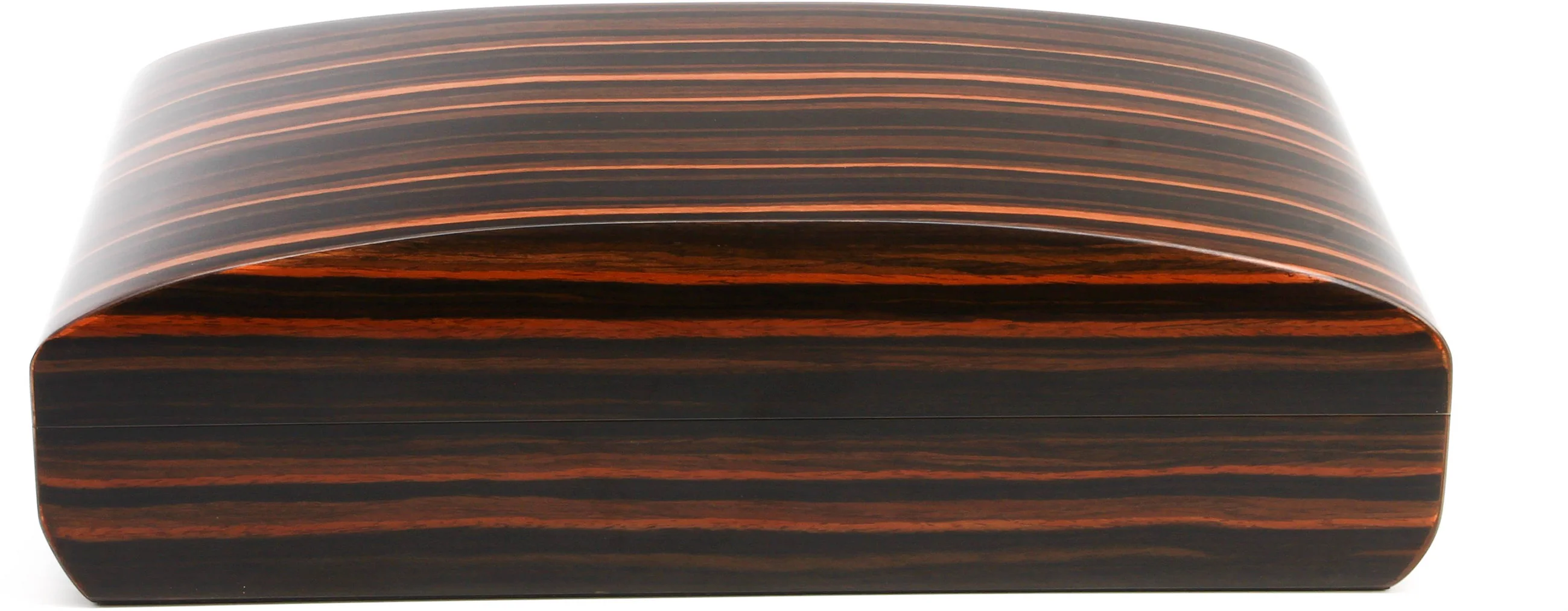Pitkänomaisen muotonsa ja aistikkaiden kaariensa ansiosta tämä upea kappale on kaukana tavallisesta humidorista. Houkutteleva makassar-viilu herättää innostusta vaalean ja tumman puunjyvän leveillä vedoilla, jotka virtaavat kauniisti humidorin hienostuneen soikean muodon yli.