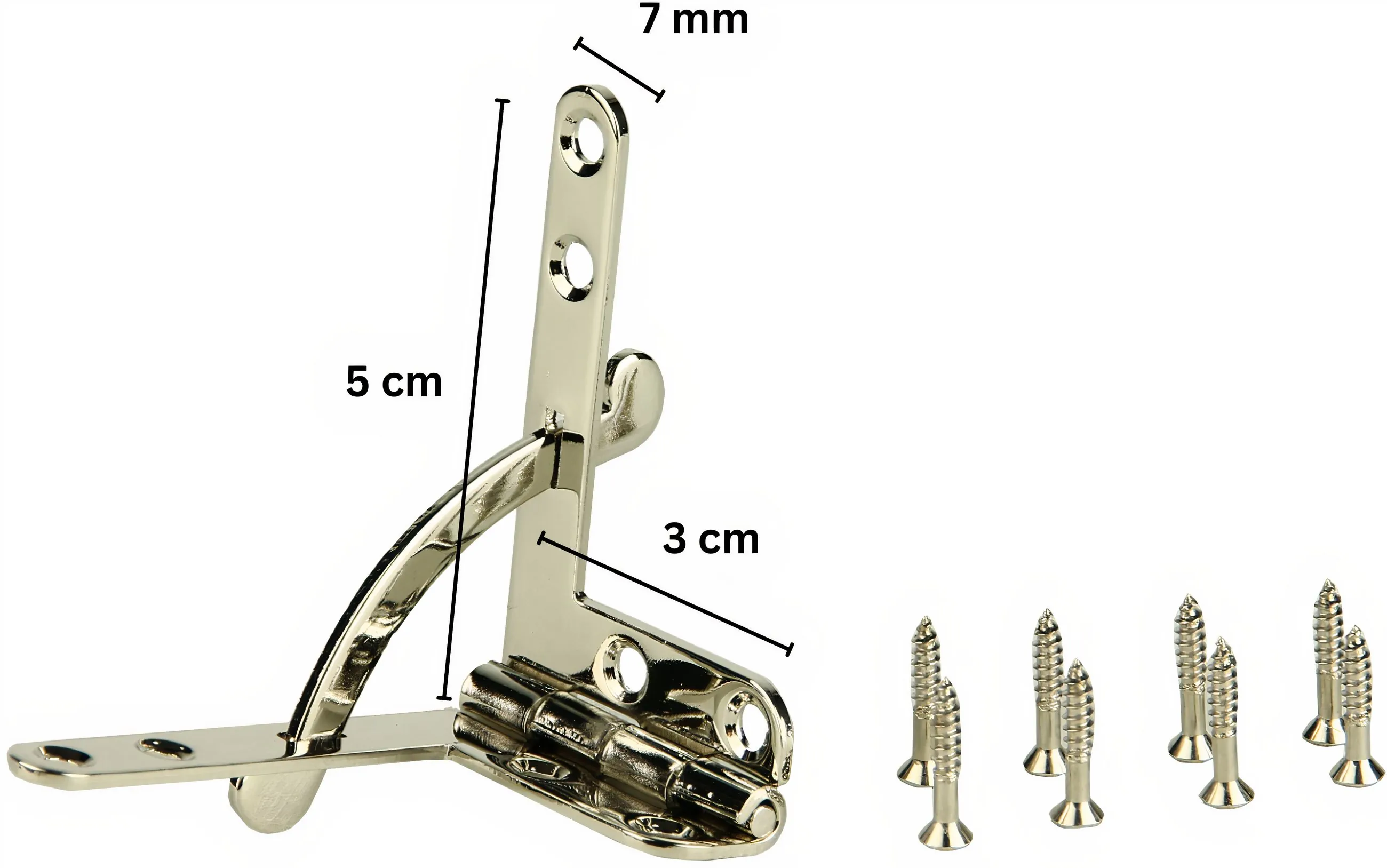 Kvadranttisarana hopeisena on kooltaan 4 x 3 cm, ja sen mukana toimitetaan ruuvit. Tämä pieni mutta välttämätön osa on olennainen osa humidorin rakennetta, sillä se yhdistää kannen runkoon.