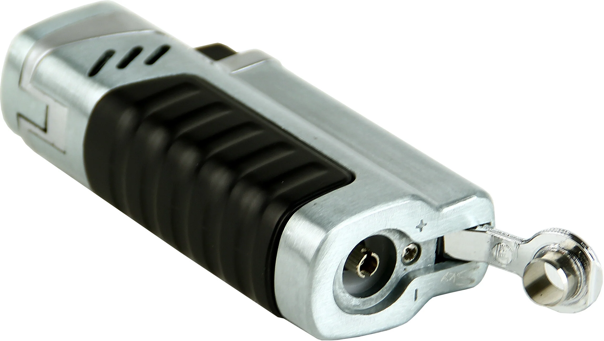 - Tyylikäs kromimuotoilu: sytyttimessä on tyylikäs kromirunko mustilla kahvaelementeillä yhdistäen estetiikan ja toiminnallisuuden.
