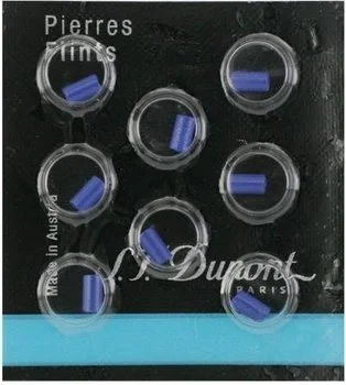 S.T. Dupont Flints 8 pcs Blue on samantyyppistä kiveä, jota käytetään Dupontin työpajassa yksinomaan valmistettu S.T. Dupont D-Light -sarjaa varten. Nämä kivet on luotu sopimaan täydellisesti sytyttimen sytytysjärjestelmään, mikä takaa korkealaatuiset kipinät sytyttimen optimaaliseen tehokkuuteen.