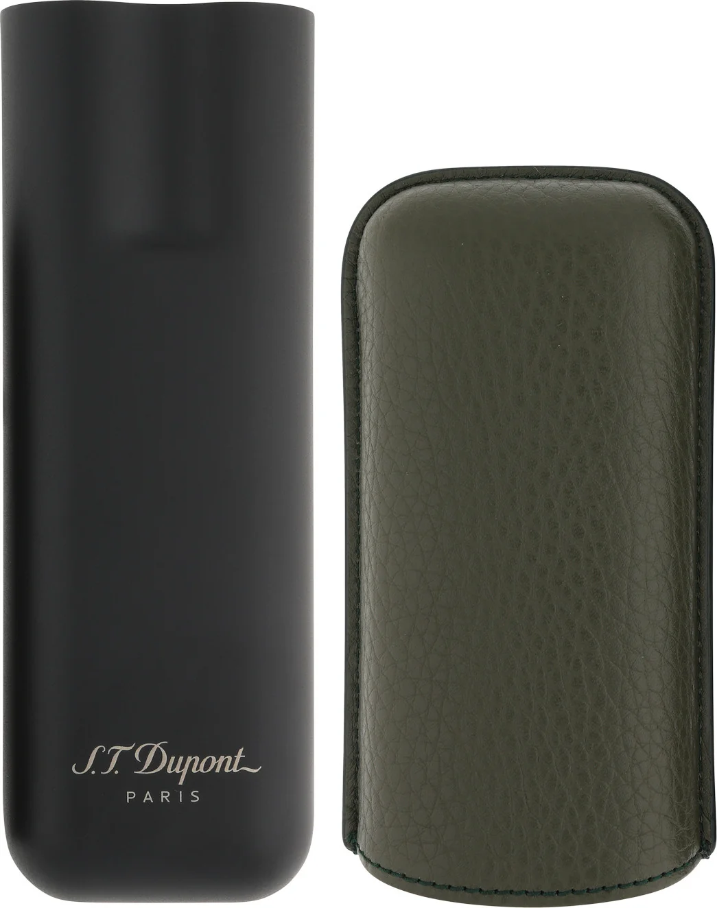 *S.T. Dupont Leather and Metal Cigar Case in Khaki/Matte Black S.T. Dupont Leather and Metal Cigar Case tyylikkäässä khakin ja mattamustan yhdistelmässä - hienostuneisuuden ja toiminnallisuuden yhdistelmä vaativalle sikariharrastajalle. Tämän kotelon yläosa on valmistettu notkeasta khakinahasta, jossa näkyy espanjalaisista perinteistä inspiroitunut käsityötaito. Khakin sävy ei ainoastaan lisää tyylikkyyttä, vaan tarjoaa myös ylellisen tuntuman. Alaosassa on tyylikästä, mattamustaa metallia, joka luo visuaalisesti näyttävän kontrastin ja tarjoaa kestävän suojan sikareillesi. Metallisen osan muotoilu ei ainoastaan miellytä silmää, vaan sillä on myös käytännöllinen tarkoitus - se estää ei-toivotun kierimisen ja varmistaa, että sikarit ovat turvallisesti paikallaan. Arvostetut sikarisi pysyvät moitteettomassa kunnossa valmiina nautittavaksi kaikessa rauhassa. Tässä kotelossa on säädettävät mitat, ja se sopii arviolta 15 cm:stä runsaan 21 cm:n pituisille sikareille. Sisähalkaisija on 2,5 cm tehden siitä ihanteellisen sikareille, joiden rengasmitta ei ylitä tätä rajaa. Olitpa sitten kokenut sikariharrastaja tai etsit hienostunutta lahjaa - S.T. Dupont Leather and Metal Cigar Case on moitteeton valinta. Tyylin, toiminnallisuuden ja ylivoimaisen laadun yhdistelmällä se menee pelkkää koteloa pidemmälle; se on kunnianosoitus sikarista nauttimisen taiteelle. Hemmottele itseäsi tällä poikkeuksellisella lisävarusteella, ja korosta sikareidesi esittelyä ja suojausta ripauksella ylellisyyttä.
