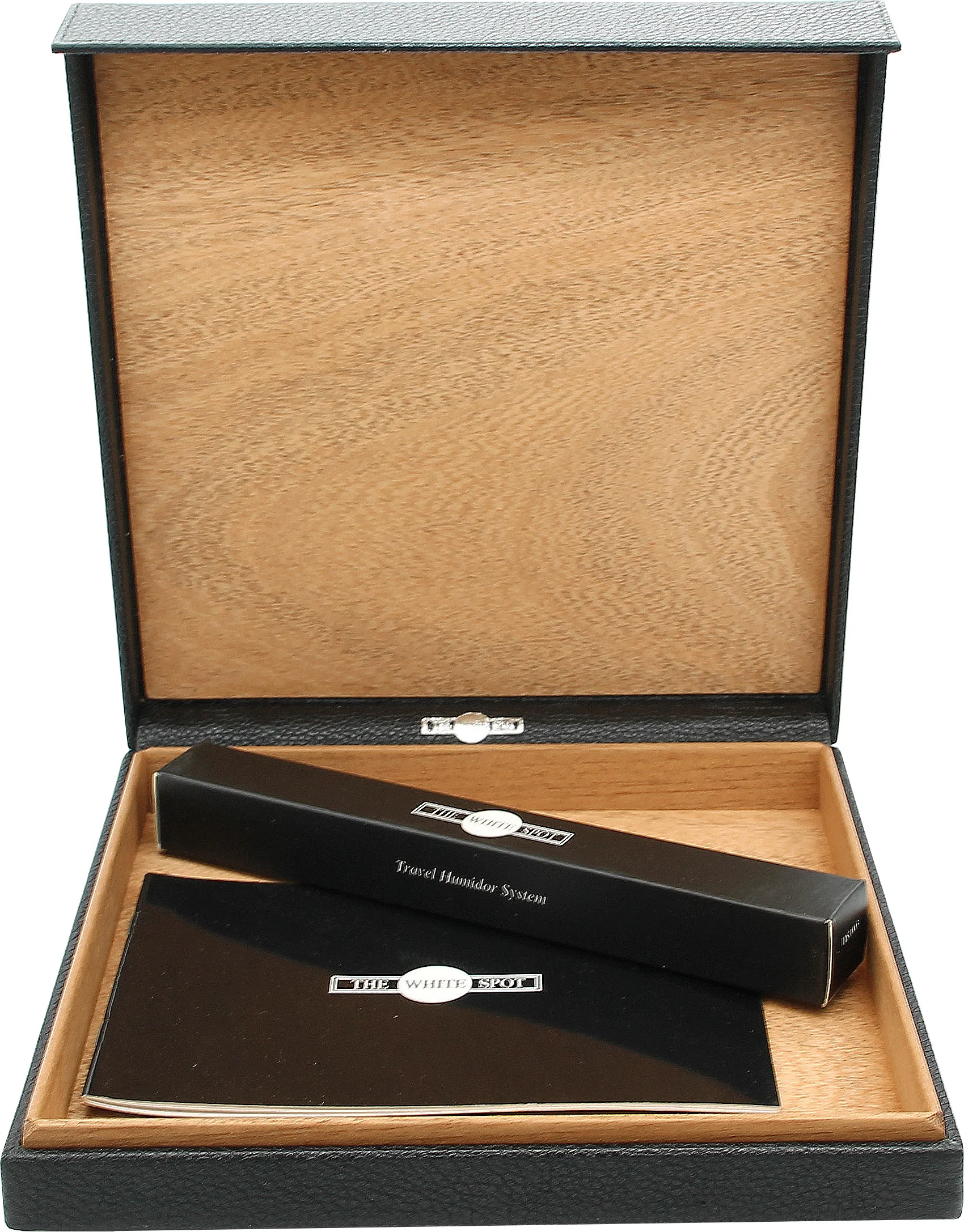 Tämä elegantti mustan värinen matkahumidori tunnetulta englantilaiselta perinnemerkiltä Dunhillilta on täydellinen kumppani matkoille. Se on päällystetty hienoimmalla Espanjasta peräisin olevalla rakeisella nahalla ja vuorattu korkealaatuisella puulla, ja siinä on tilaa ja suojaa noin 10 sikarille. Sulkimena on nahan alle piilotettu magneettilukko. Nahkaan kohokuvioitu White Spot -symboli on Dunhillin erottamaton tavaramerkki. Hienostunut matkahumidori, joka suojaa tyylikkäästi sikareitasi ja osoittautuu luotettavaksi kumppaniksi kaikilla matkoillasi ja retkilläsi.