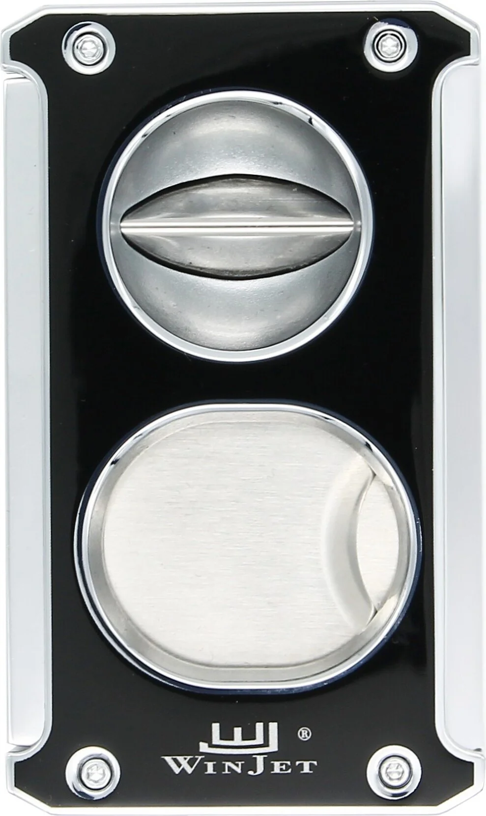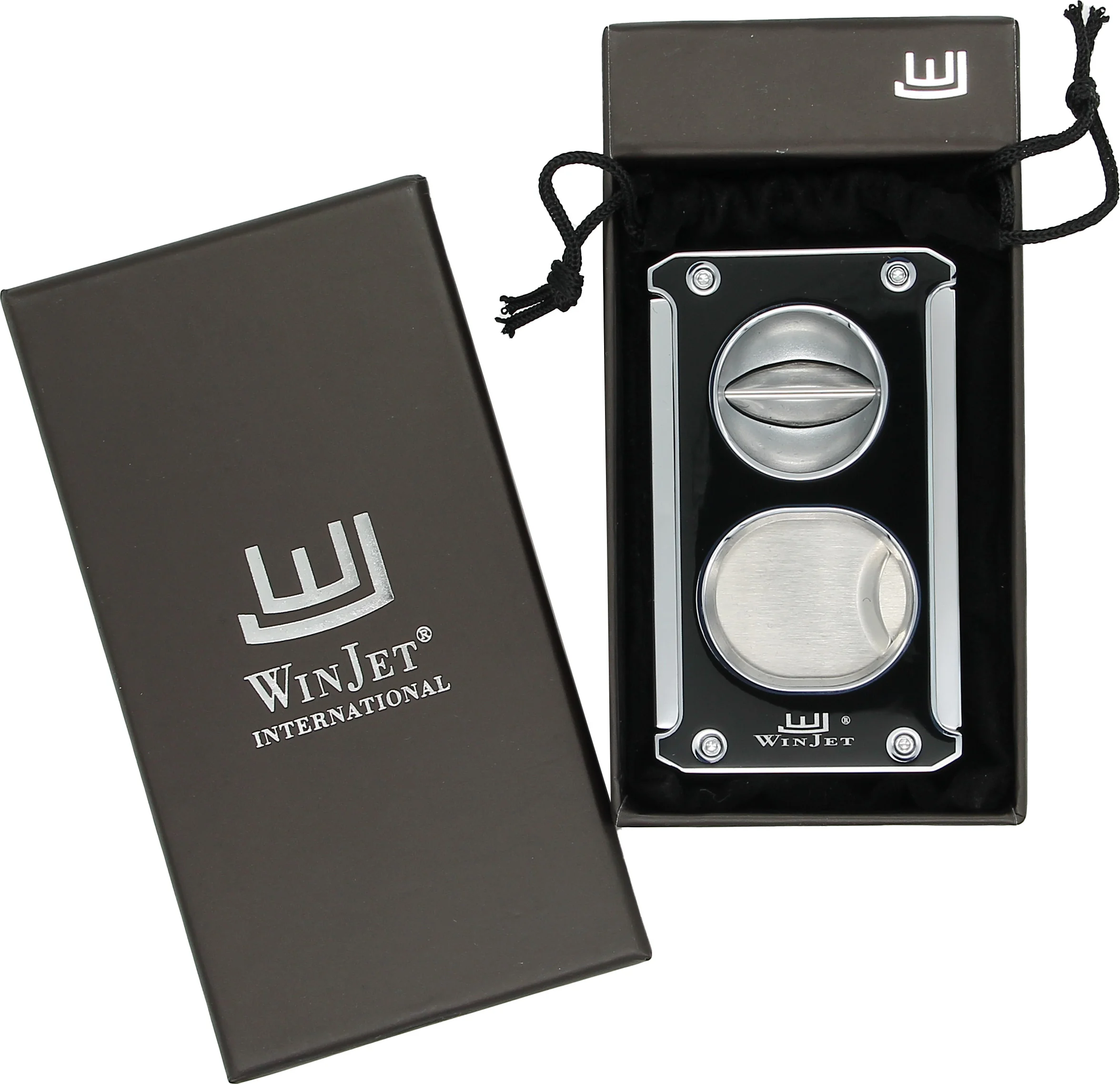 Paranna sikarikokemustasi Winjet 3-in-1 Cigar Cutterilla kiiltävän mustana hopeisin korostuksin. Tämä monipuolinen lisävaruste vastaa sikariharrastajien erilaisiin mieltymyksiin yhdistäen klassisen leikkauksen, V-leikkauksen ja painettavan sikarileikkurin yhdessä työkalussa.