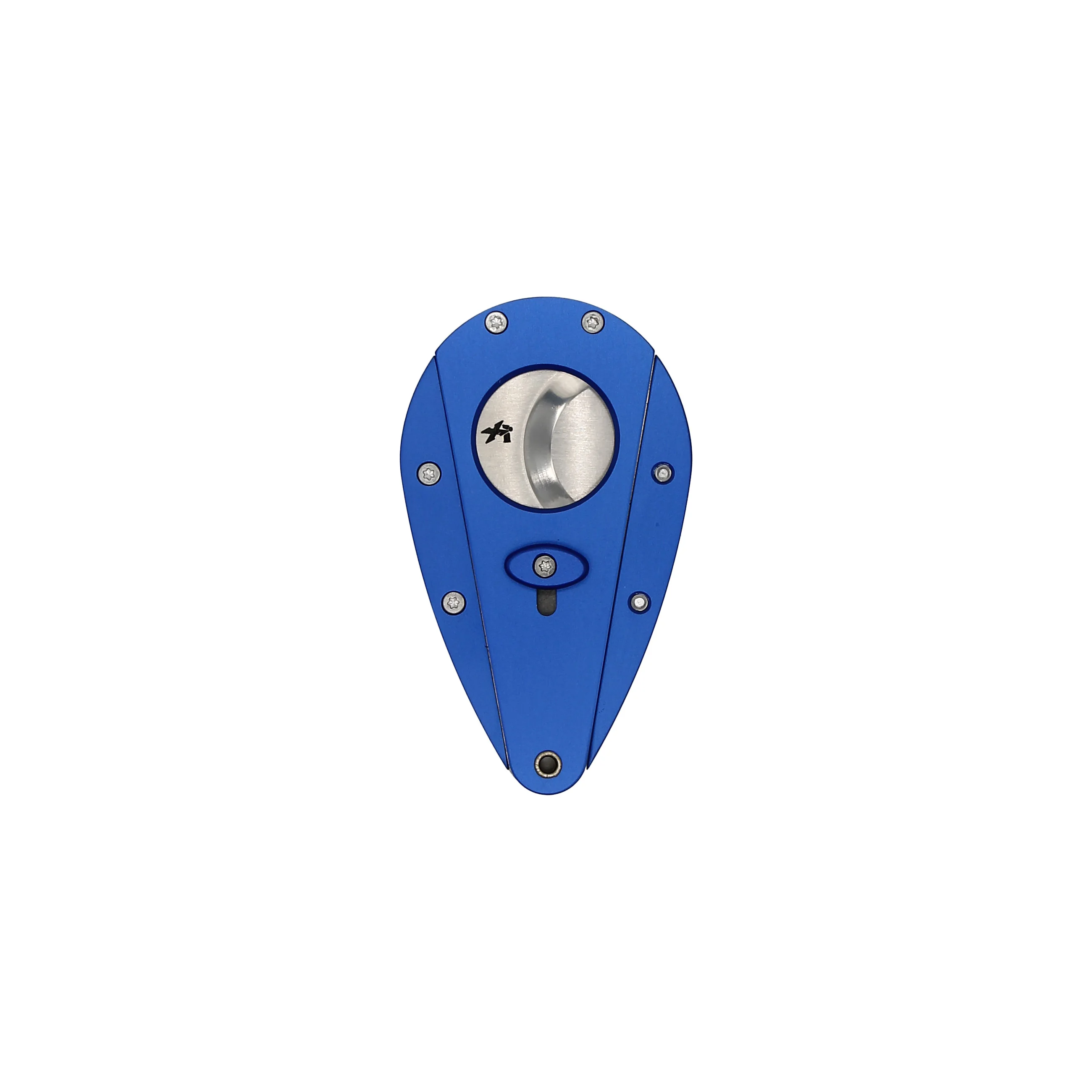 Tämän tietyn Xikar Xi1 Double Blade Cutterin anodisoitu alumiinirakenne on väriltään katseita kääntävän taivaansininen. Mikä yhdistettynä kirkkaisiin, ruostumattomiin teriin, jotka ovat kontrastissa sen ergonomisen, pisaramaisen muodon kanssa, saa sinut varmasti hymyilemään.