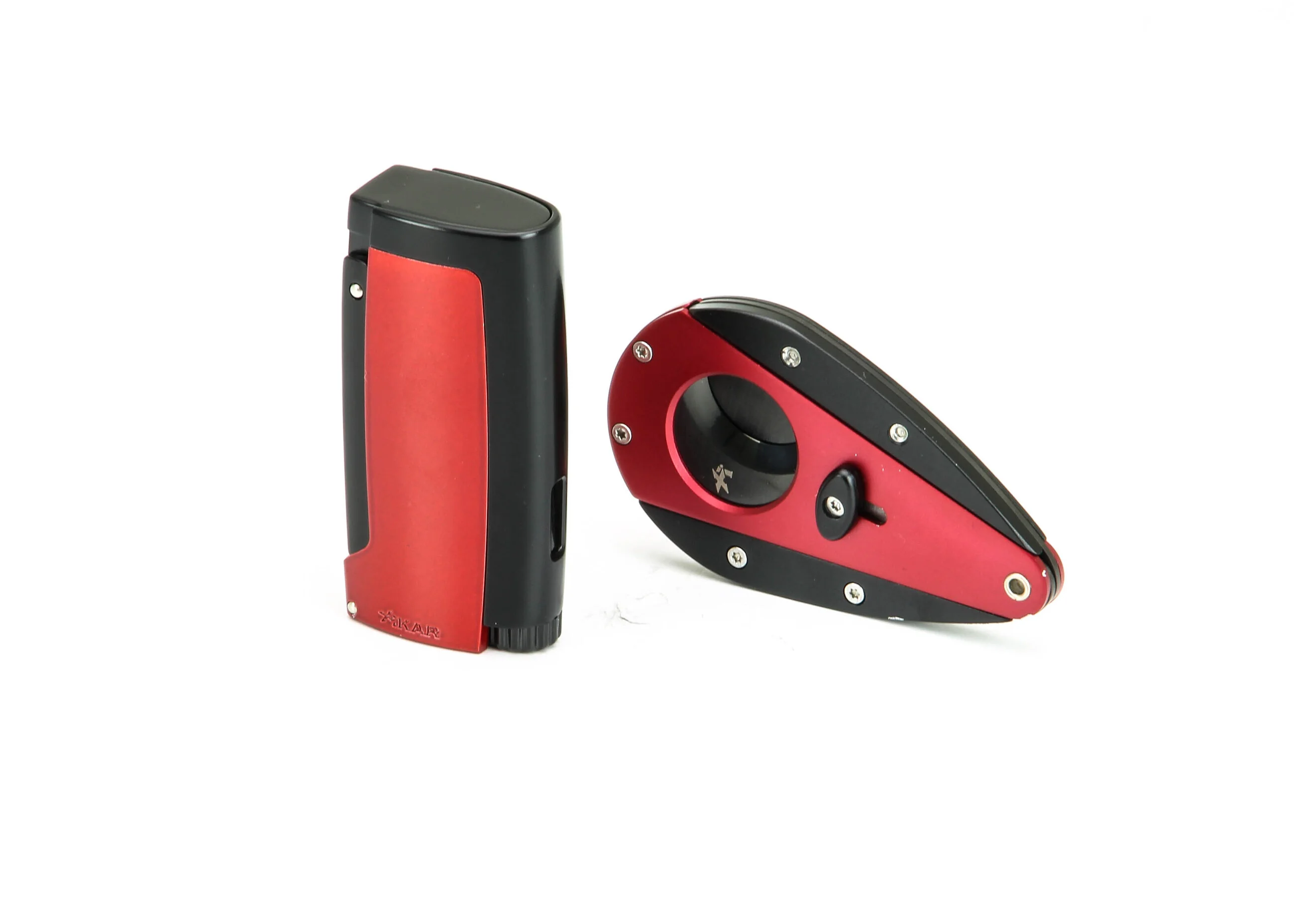 Tässä hämmästyttävässä kokoelmassa on kaksi Xikarin rakastettua vekotinta, jotka tuottavat sikarinpoltto-onnellisuutta milloin ja missä tahansa. Punaiseen ja mustaan, terävään värimaailmaan puetut, yhteensopivat Xikar Xi -leikkuri ja Xikar Pulsar -sytytin saavat väkijoukon heti innostumaan.